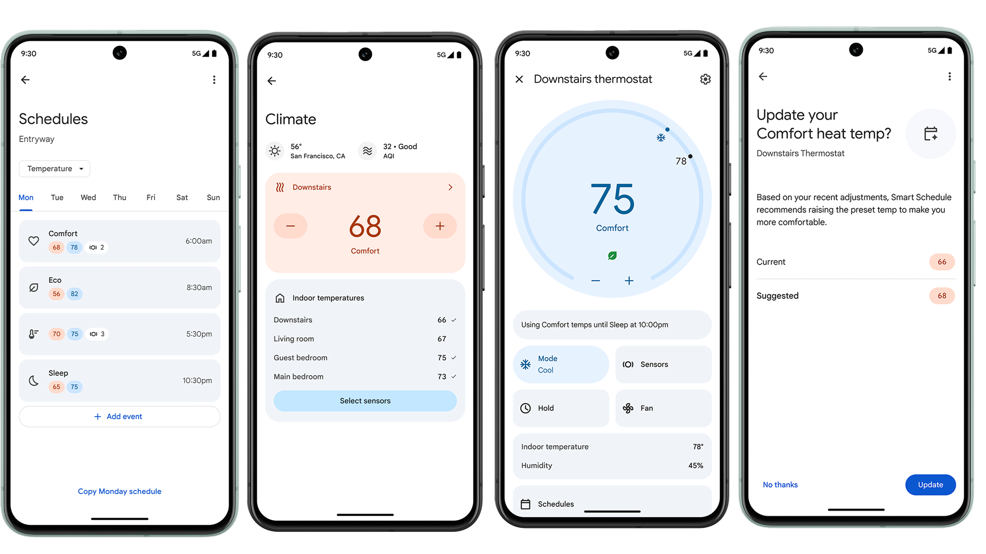 At the heart of the new Nest Learning Thermostat, like pretty much everything coming out of Google these days, is another chapter of Gemini usage driving an AI system that automatically adjusts the temperature based on user patterns, helping to optimize comfort while reducing energy consumption. The AI-driven Smart Schedule feature quickly learns the homeowner's preferences and adjusts settings accordingly, even taking into account outdoor weather conditions to maintain an ideal indoor climate. The thermostat also introduces Smart Ventilation, a new feature that optimizes fresh air intake based on outdoor air quality and temperature, while also monitoring humidity levels to prevent mold and condensation.