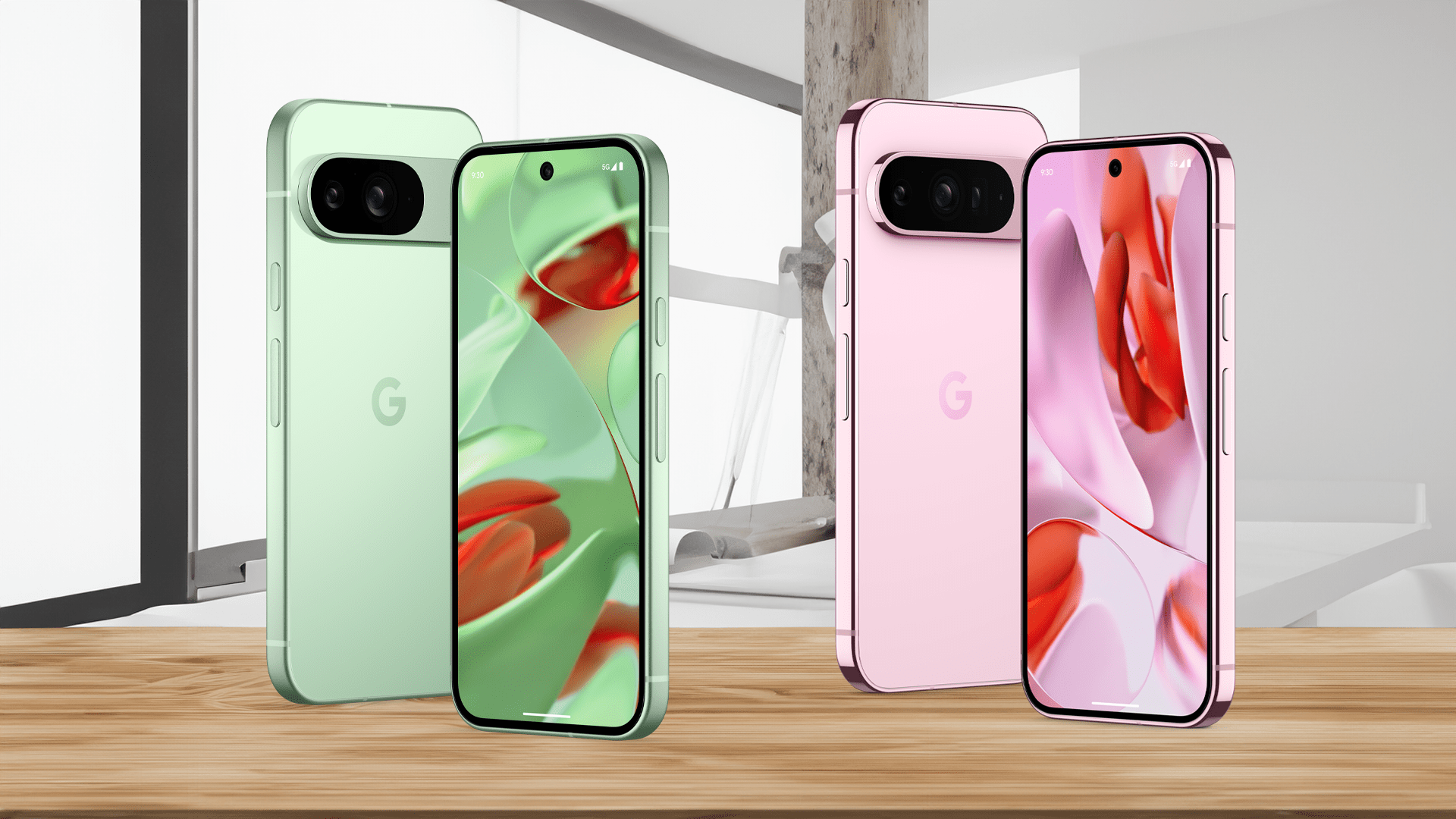 Pixel 9 in Peony and Wintergreen.