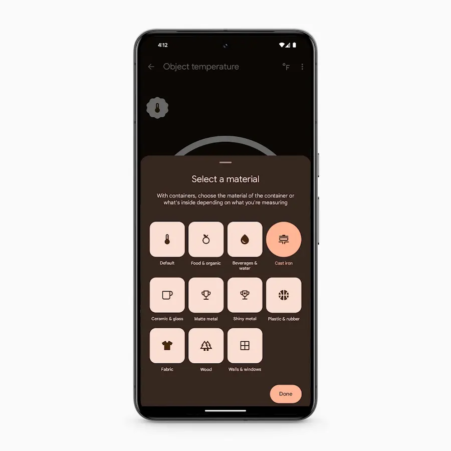 The Pixel 9 Pro is equipped with an infrared temperature sensor that’s used to, you guessed it, measure the temperature of things. It can measure the temperature of a variety of surfaces and is even certified by the FDA to measure the temperature of your body. The temperature sensor could be useful if you have small children, but otherwise, I don’t think many people will place this feature high on their list.
