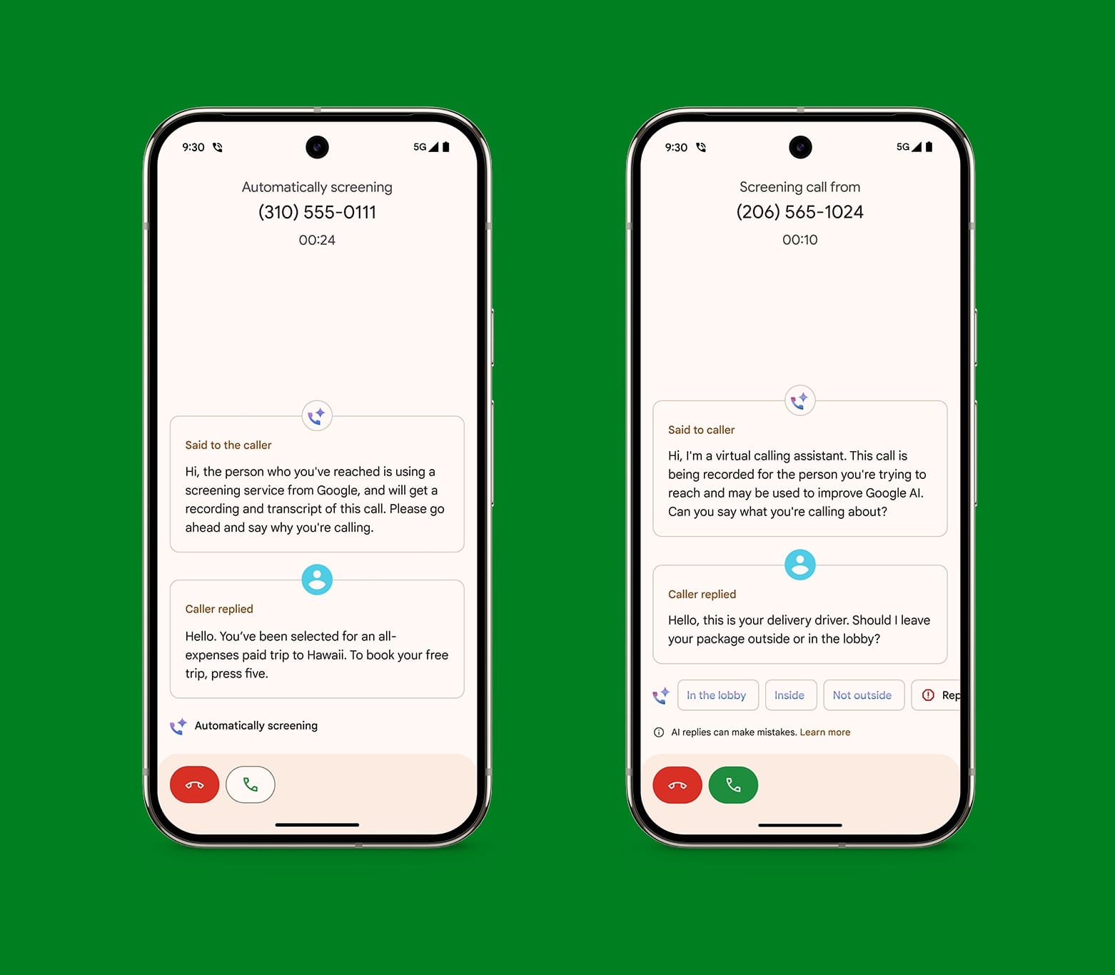 Automatic Call Screening view: You can now peek into the conversation between the caller and the AI agent when a phone call was automatically screened. When you peek into the call, you can choose to answer or decline at any time. This feature is available on all Pixel phones.