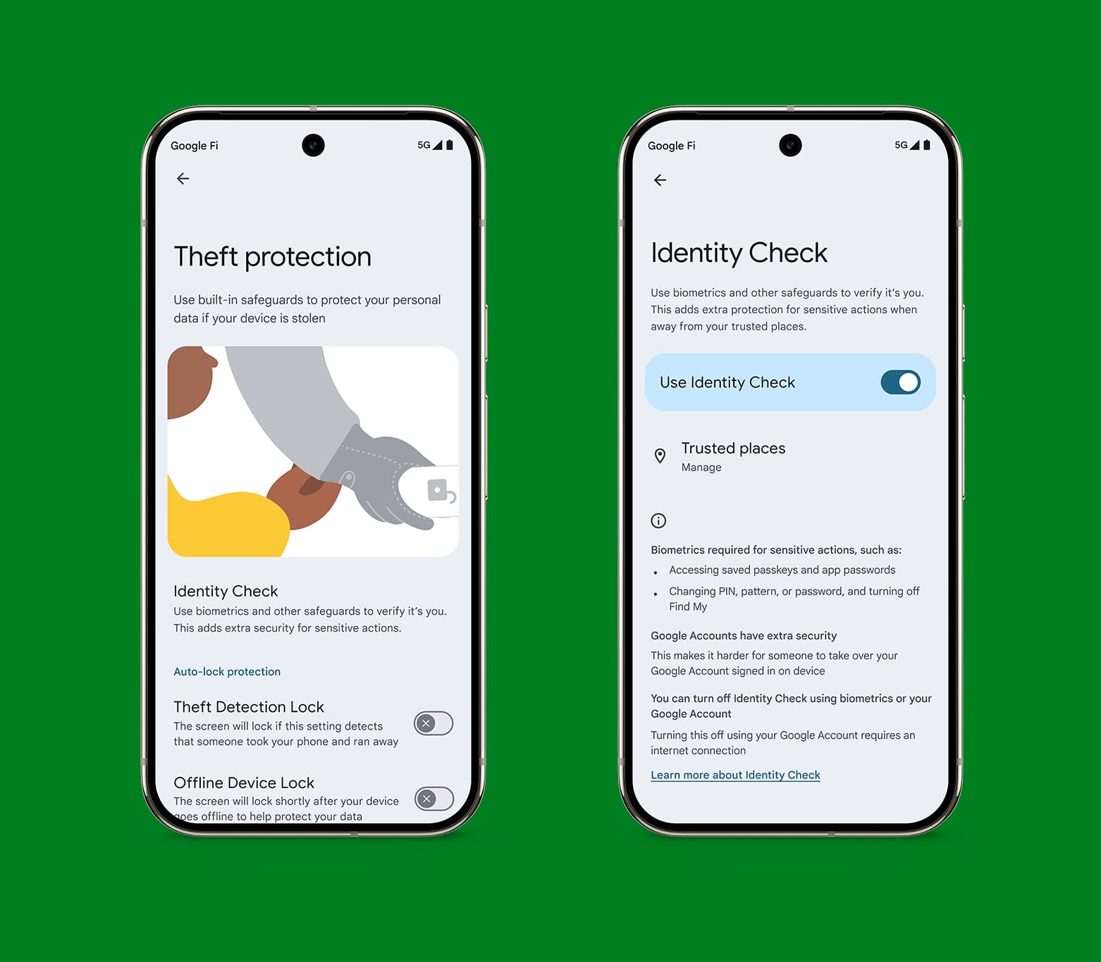 Identity Check: The Identity Check feature that Google teased in October is now available in beta. This feature is part of Android's theft protection suite, and it offers extra protection against anyone who tries to take your phone and access your passwords, change your PIN, or turn off theft protection features. When it's enabled, your phone will require your biometrics before any changes to sensitive settings are allowed, but only if your phone isn't in a trusted location. Google says a "production release" of this feature is coming in January 2025.