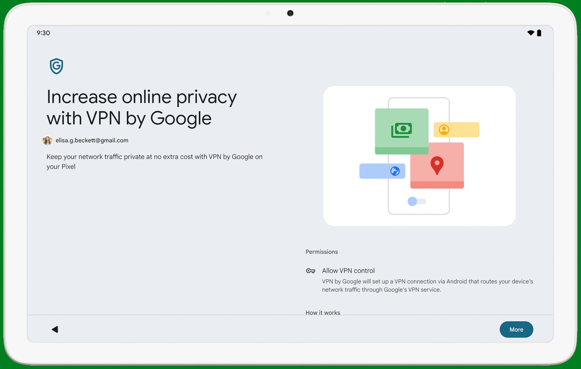 The Pixel Tablet is also getting support for Google VPN, which was previously only available on Pixel phones. Google VPN is free and built-in to the OS, so you won't be bugged by a persistent notification when it's active.