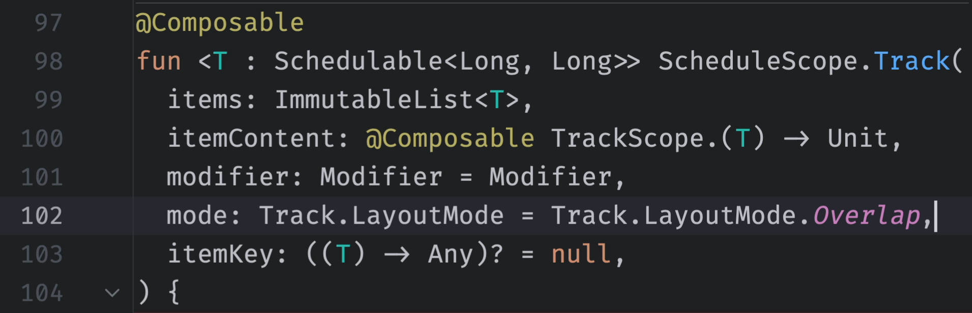 Track composable with an input for the mode. Changing the value of mode should result in a recomposition.If I want to look at how my Track inputs are changing, and how that's affecting recomposition, I can do the following: